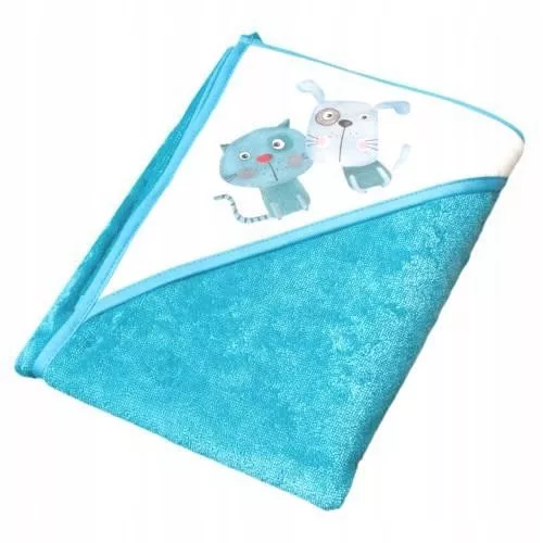 TEGA BABY Okrycie kąpielowe PIES I KOT niebieskie, 100x100cm
