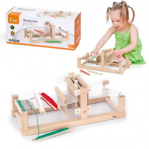 Krosno tkackie – ręczne, drewniane dzięki niemu dziecko może stworzyć samodzielnie własne tkaniny. Jest to kreatywna zabawka, która wpływa na wyobraźnię dziecka, wspomaga rozwój motoryki Twojego dziecka, precyzje ruchów palców i dłoni. Zabawa z krosnem tkackim zapewni ciekawe zajęcie, w którym każdy maluch może stworzyć swój własny warsztat tkacki. Krosno tkackie zapakowane jest w estetyczne, kolorowe pudełko. Polecamy!