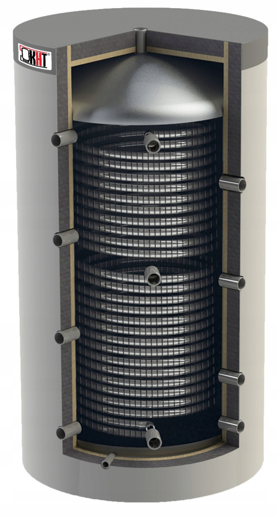 Dzięki wężownicy o dużej powierzchni (5m2) osiąga się wysoką efektywność podgrzewania wody użytkowej. W górnej części zbiornika zamontowany jest wymiennik ciepła, który umożliwia szybkie dostarczanie ciepłej wody użytkowej.