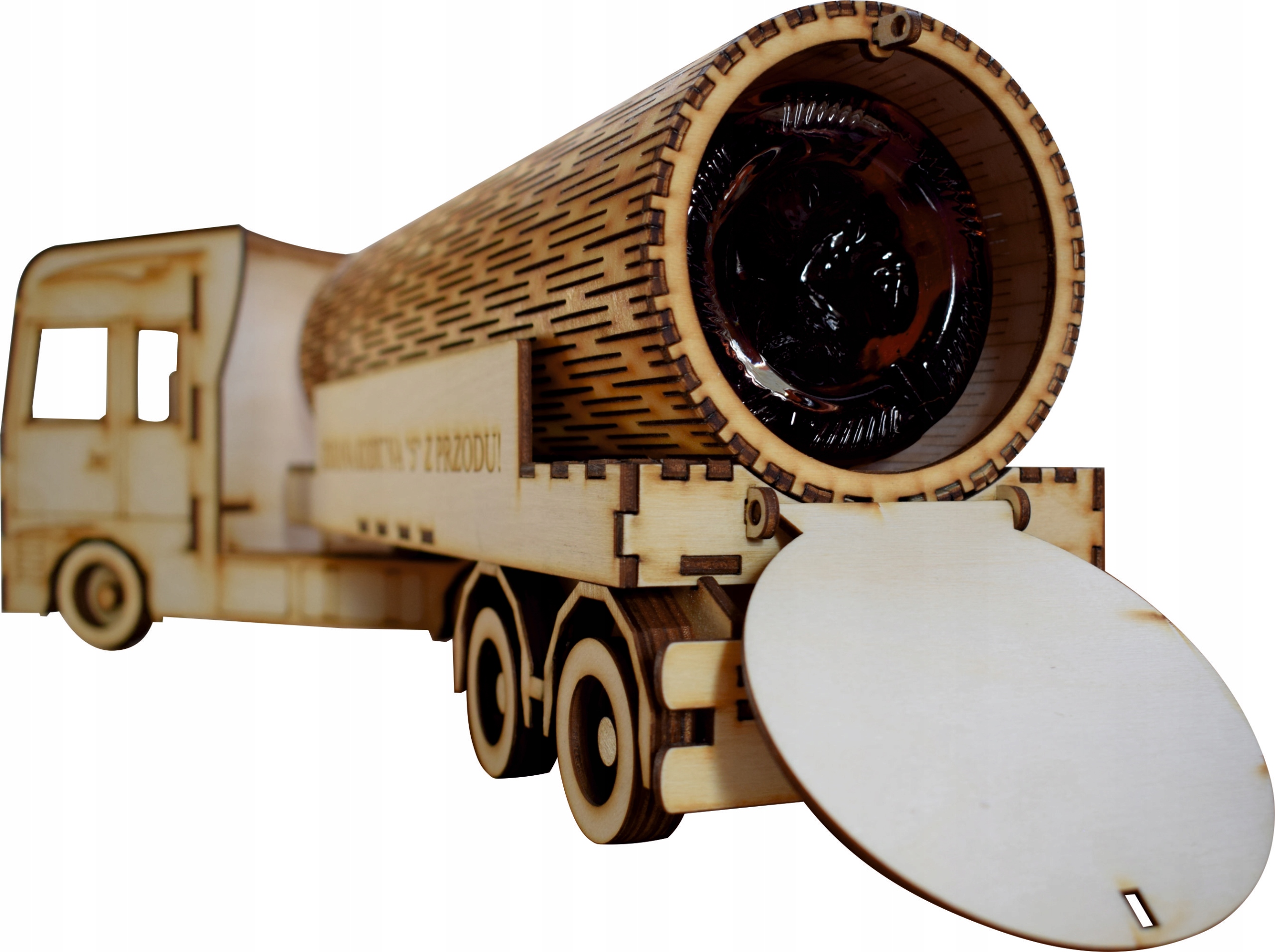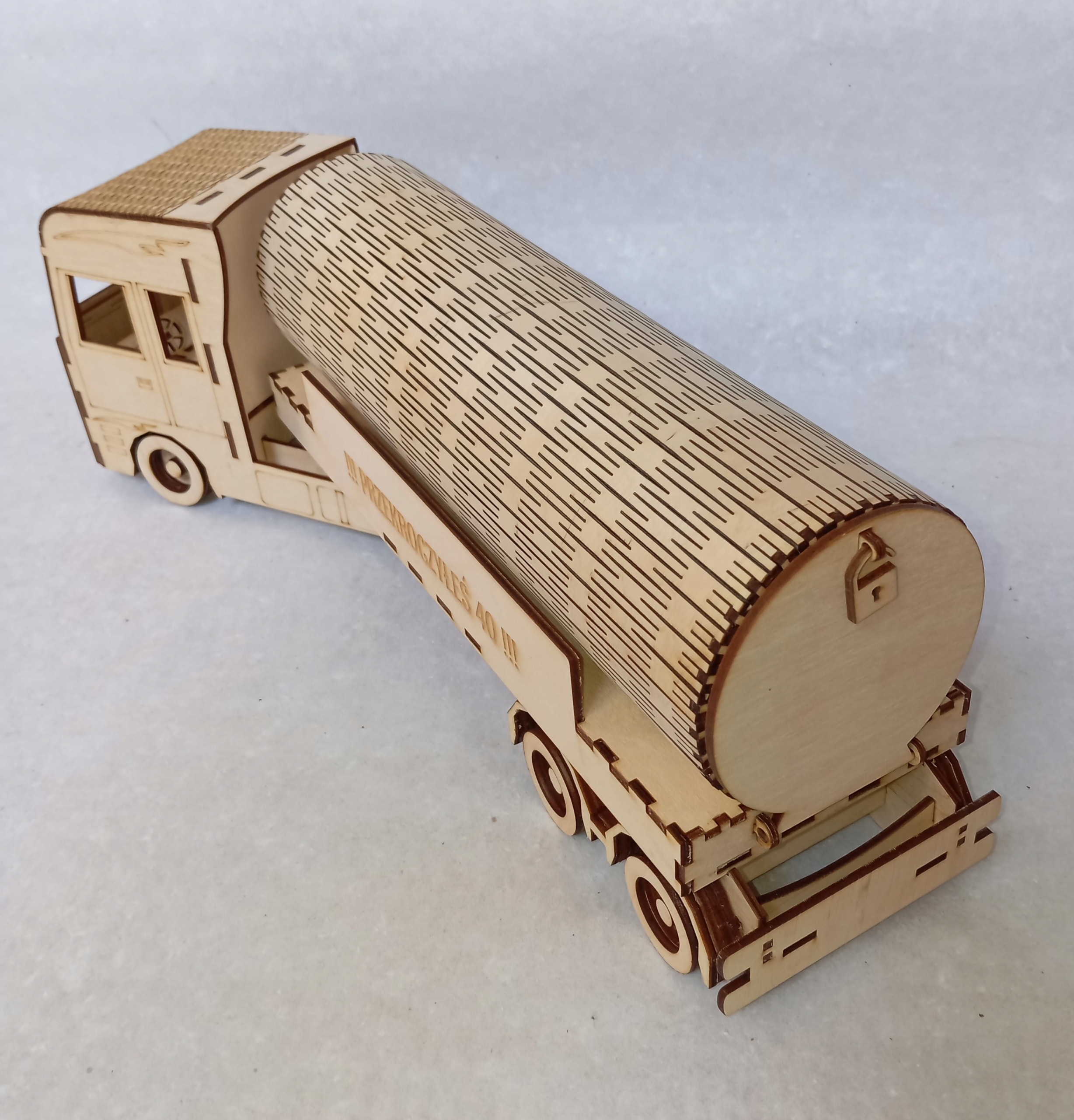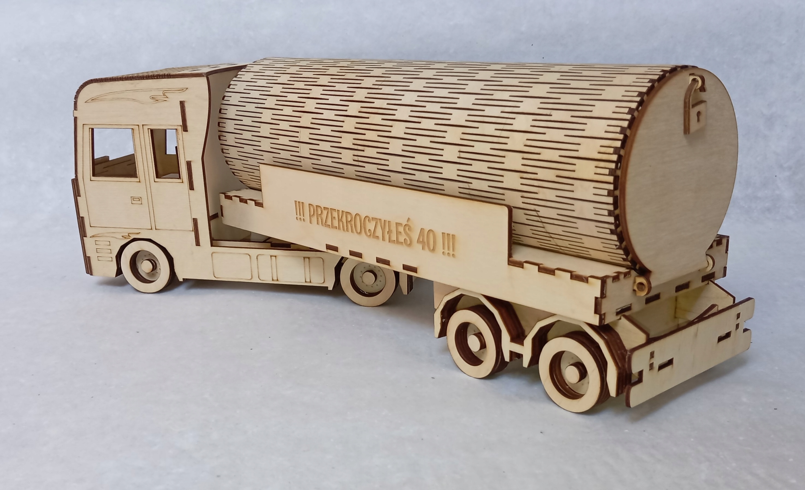 Ciężarówka wykonana jest ze sklejki 3mm i zdobiona laserowo.
