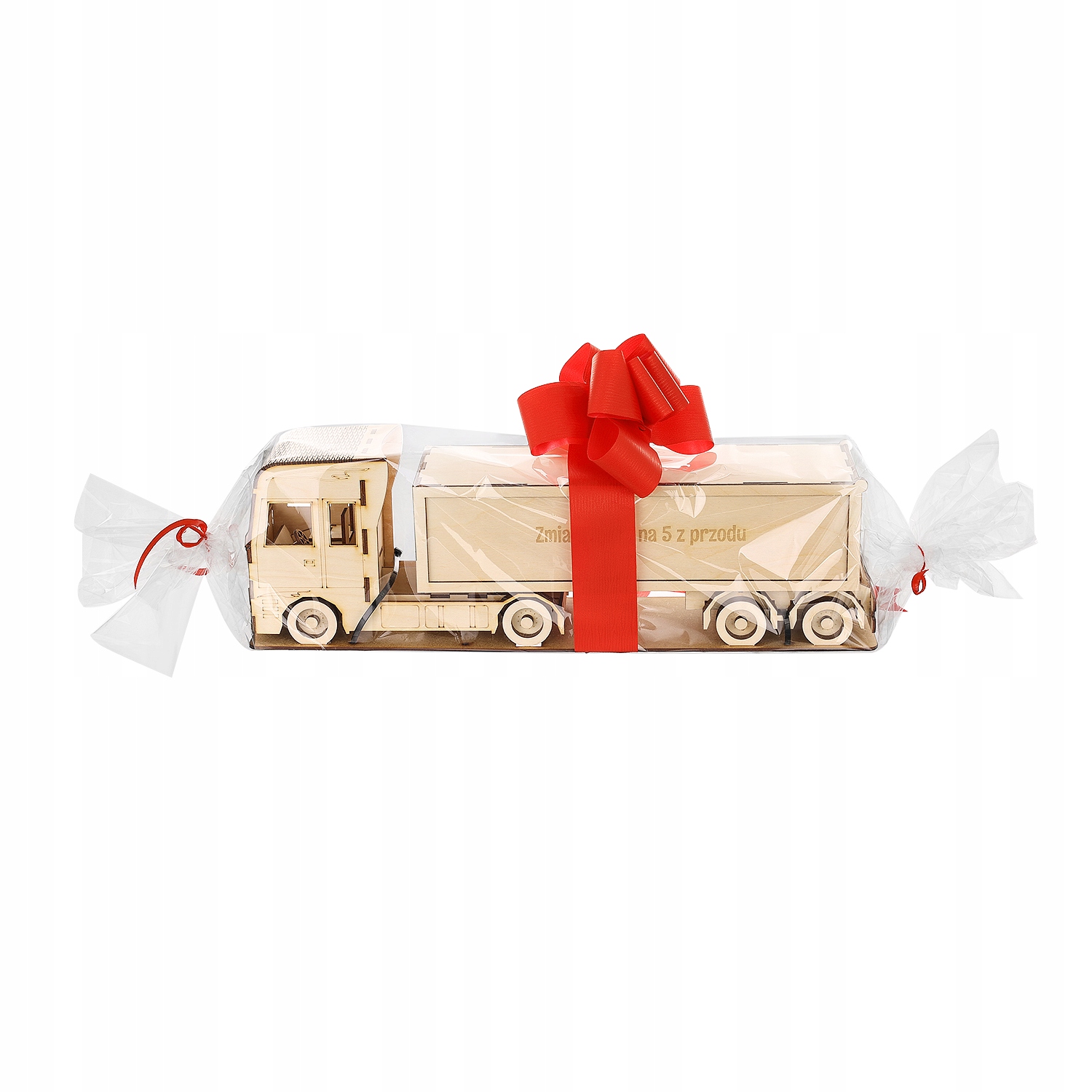 Ciężarówkę możemy zapakować na podkładce stabilizującej w celofan i czerwoną kokardę - będą mieć Państwo prezent gotowy do wręczenia.