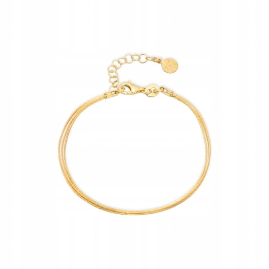 Potrójna pozłacana bransoletka o splocie typu linka, czyli subtelność w nowoczesnym wydaniu. Wykonana ze srebra próby 925. Posiada logo AK oraz regulowane zapięcie, dzięki któremu uzyskasz długość pomiędzy 16 cm a 19 cm.
