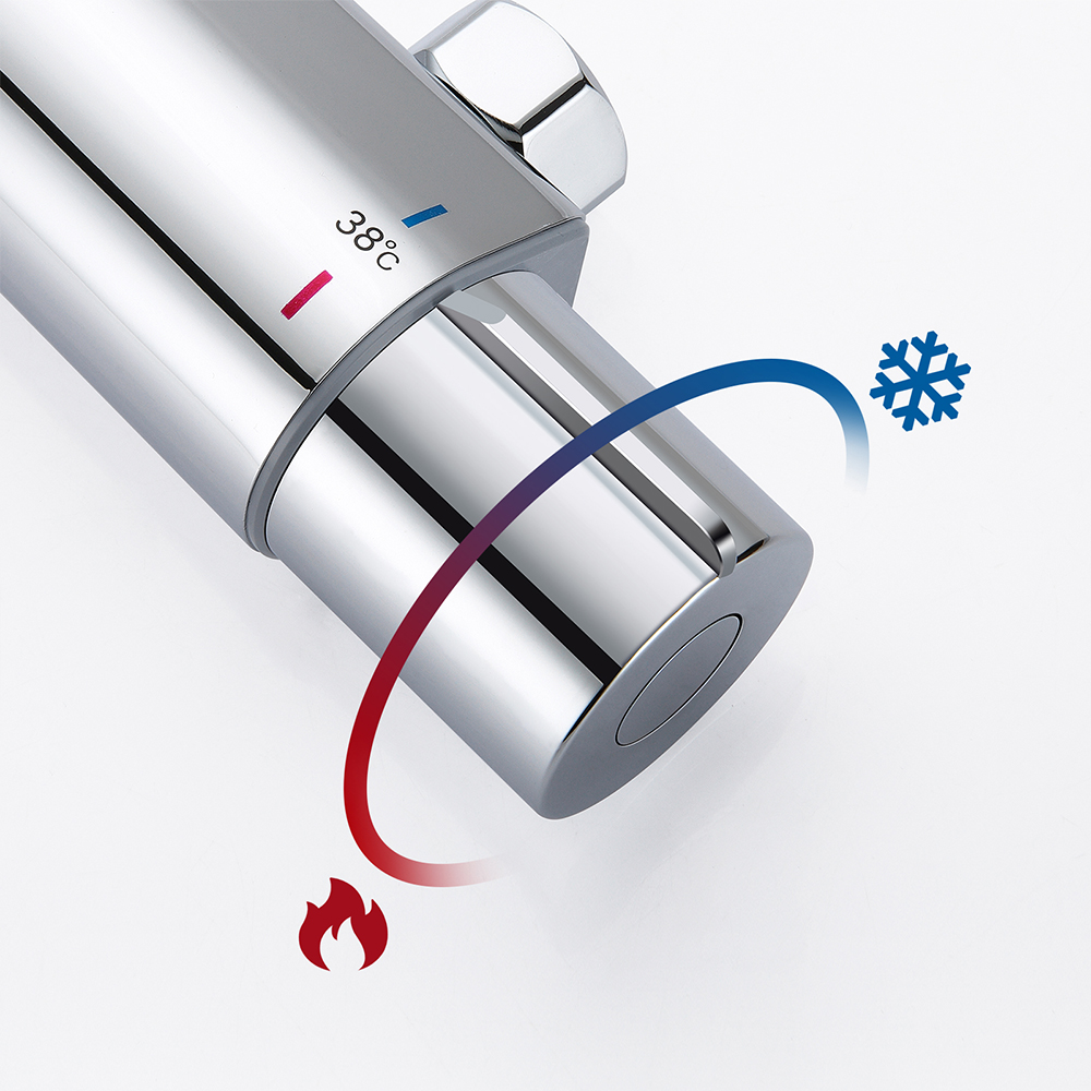 ✔ Bateria termostatyczna z głowicą ceramiczną umożliwia precyzyjne ustawienie temperatury wody dla wygody użytkowania
