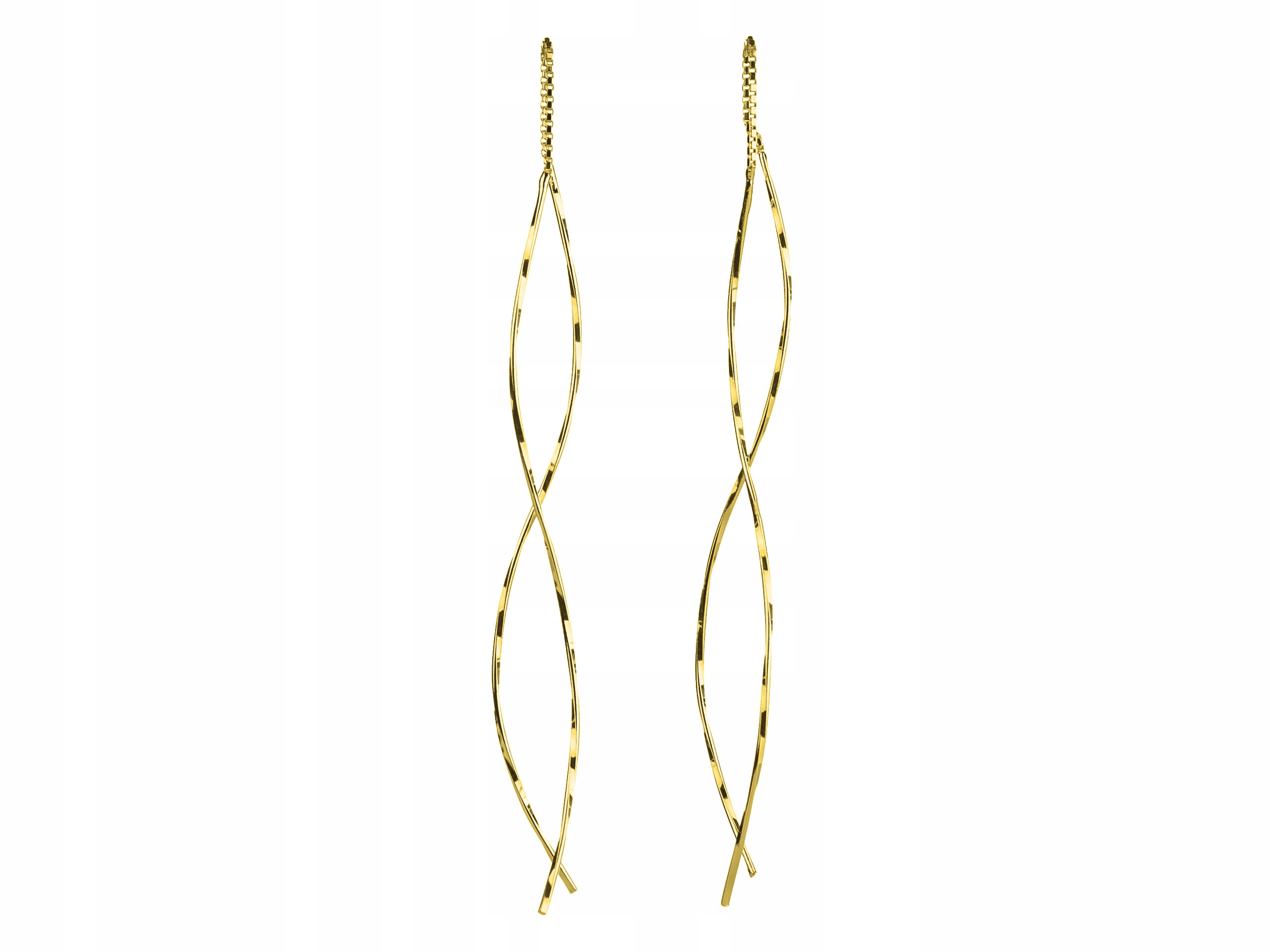 Powierzchnia srebra pokryta jest 24-karatowym żółtym złotem. Aby założyć kolczyk należy przeciągnąć jeden z jego sztywnych elementów przez dziurkę w uchu. Szerokość kolczyka w najszerszym miejscu to około 1,2mm. Całkowita długość kolczyka (nie złożonego) to około 18,3 - 18,5 cm. Po założeniu około 9 cm.