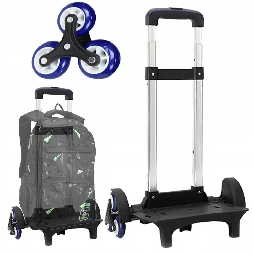 Martwisz się, że ilość książek i zeszytów mocno obciąża kręgosłup Twojej pociechy? Mamy dla Ciebie rozwiązanie! Dzięki naszemu stelażowi na 6 obrotowych kółkach można wygodnie poruszać zarówno po prostym jednolitym chodniku/alejce, ale także po nierównym terenie czy schodach, bez obciążania kręgosłupa. W dodatku Twoje dziecko może wybrać kiedy chce nieść plecak na plecach, a kiedy prowadzić jak walizkę.