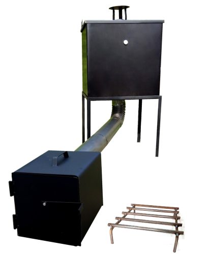 Przedmiotem sprzedaży jest solidna metalowa wędzarnia ogrodowa wykonana z grubej czarnej blachy, wędzarnia z zewnątrz jest pokryta lakierem odpornym na temperaturę i warunki atmosferyczne. Wędzarnia została tak zaprojektowana że po zakończeniu wędzenia możemy ją bardzo łatwo i szybko złożyć dlatego przechowywanie jej nie sprawia problemu. Wędzarnia jest wyposażona w termometr który ułatwia proces wędzenia poprzez kontrolowanie temperatury.