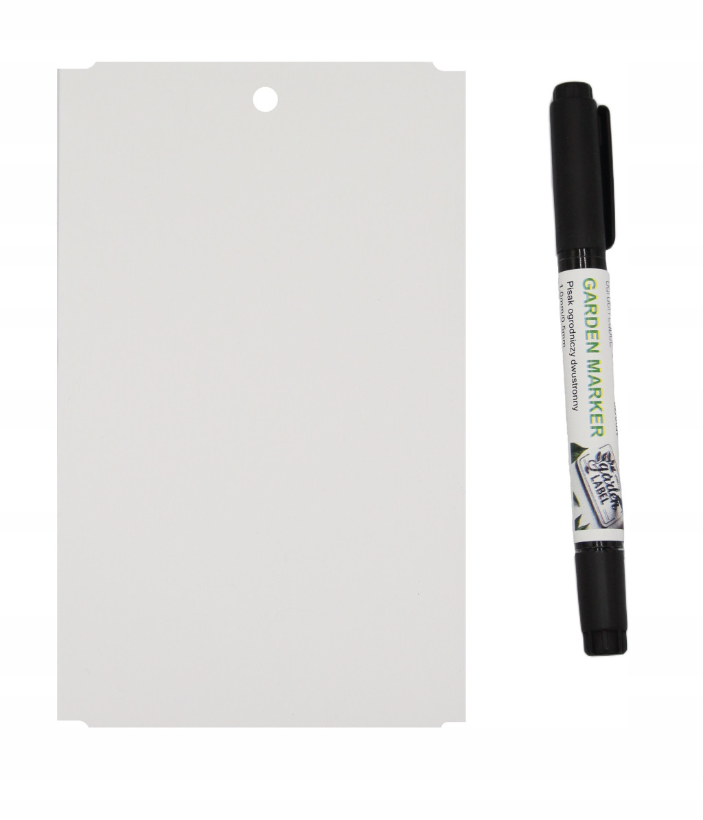 GARDEN MARKER + Profesjonalne etykiety ogrodnicze/ zawieszki 100x163,5 mm to trwałe i odporne zawieszki przeznaczone do znakowania roślin w szkółkach, gospodarstwach ogrodniczych, centrach ogrodniczych oraz w produkcji sadowniczej i warzywniczej. Wykonane z wysokiej jakości tworzywa sztucznego HDPE, gwarantują długotrwałą czytelność oznaczeń nawet w wymagających warunkach atmosferycznych.