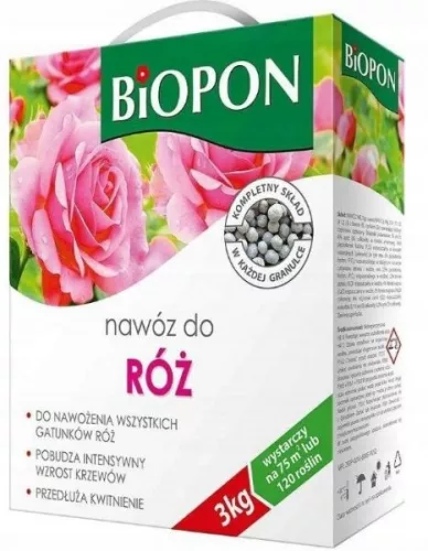 Wieloskładnikowy nawóz o wysokiej zawartości składników pokarmowych, specjalnie dostosowanych do wymagań wszystkich gatunków róż.