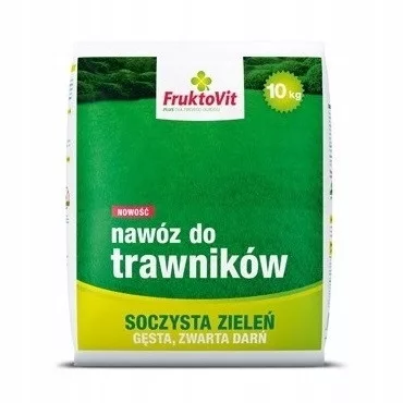 Do uzyskania trwałej, zwartej darni i pięknej zieleni traw konieczne jest systematyczne nawożenie trawnika od wczesnej wiosny do jesieni. FruktoVit PLUS zawiera składniki pokarmowe w ilościach i formach dostosowanych do wymagań pokarmowych wszystkich gatunków traw, szczególnie do trawników ozdobnych i reprezentacyjnych. Zawarte w nawozie składniki mineralne, stymulują wzrost traw, poprawiają ich odporność oraz zapewniają intensywny zielony kolor i zwartą darń, co przeciwdziała wzrostowi mchu i zachwaszczeniu. FruktoVit PLUS może być stosowany na wszystkich rodzajach gleb, zarówno przy zakładaniu trawników, jak również do nawożenia trawników wieloletnich.