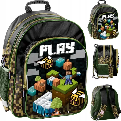 Plecak szkolny dwukomorowy z najnowszej kolekcji Paso GAME. Plecak jest lekki i pojemny, rozmiarem dopasowany dla uczniów szkół podstawowych klas 1-3. Oryginalna brązowo-czarna z dodatkiem zieleni kolorystyka stanowi harmonijną całość i zachwyca małych klientów. Z przodu grafika z motywem Pikselowej Gry. Dedykowany jest dla fanów gier komputerowych. Plecak idealnie pasuje do innych produktów z tej serii.