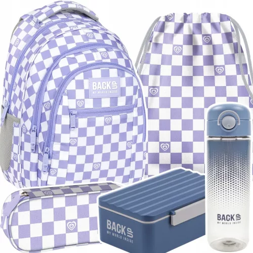 ZESTAW 5 el. Plecak szkolny młodzieżowy BackUP 26 L SZACHOWNICA FIOLET (PLB6O29SET5CZ)