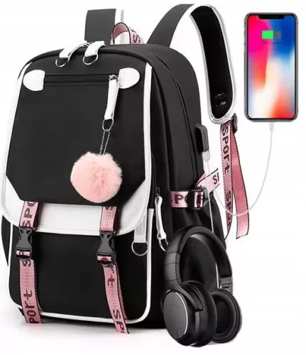 PLECAK SZKOLNY + KABEL USB + WYJŚCIE USB PLECAK NAJMODNIEJSZY W TYM SEZONIE
