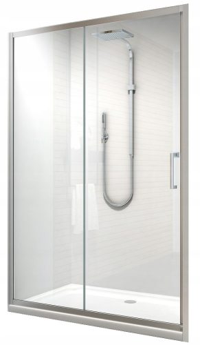 Vrata za tuš Zoe 120 x 195 cm s steklom in aluminijastim profilom, prilagodljiva za montažo v levo ali desno stran ter na tla ali prho. Profil je reguliran za 15 mm, s čistim hartanim steklom in kromi