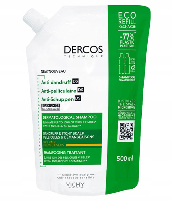 1× Szampon przeciwłupieżowy Vichy Dercos DS do włosów suchych Eco-Refill 500 ml