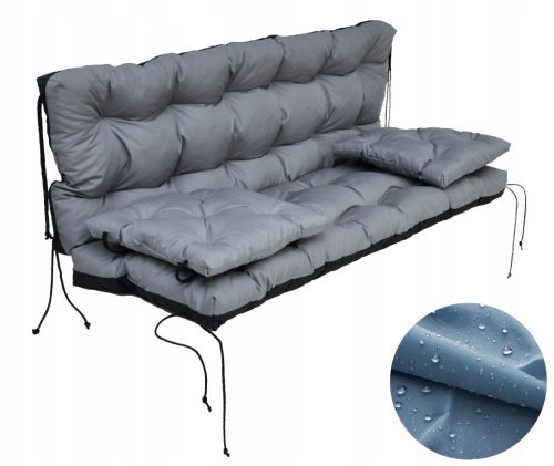 Szara Wodoodporna dekoracyjna poduszka na huśtawkę ogrodową ze sznurkami do wiązania. Idealna na taras lub do ogrodu.
