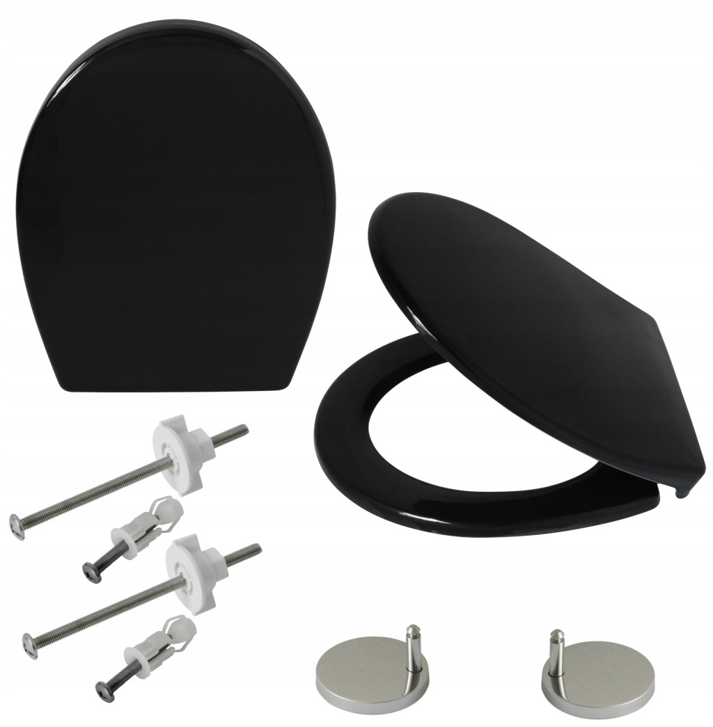 Deska sedesowa WC CZARNA, wolnoopadająca, z systemem łatwego wypinania, rozmiar uniwersalny, z łatwą regulacją i właściwościami antybakteryjnymi, w komplecie 2 rodzaje mocowań, możliwość montażu od góry lub od dołu