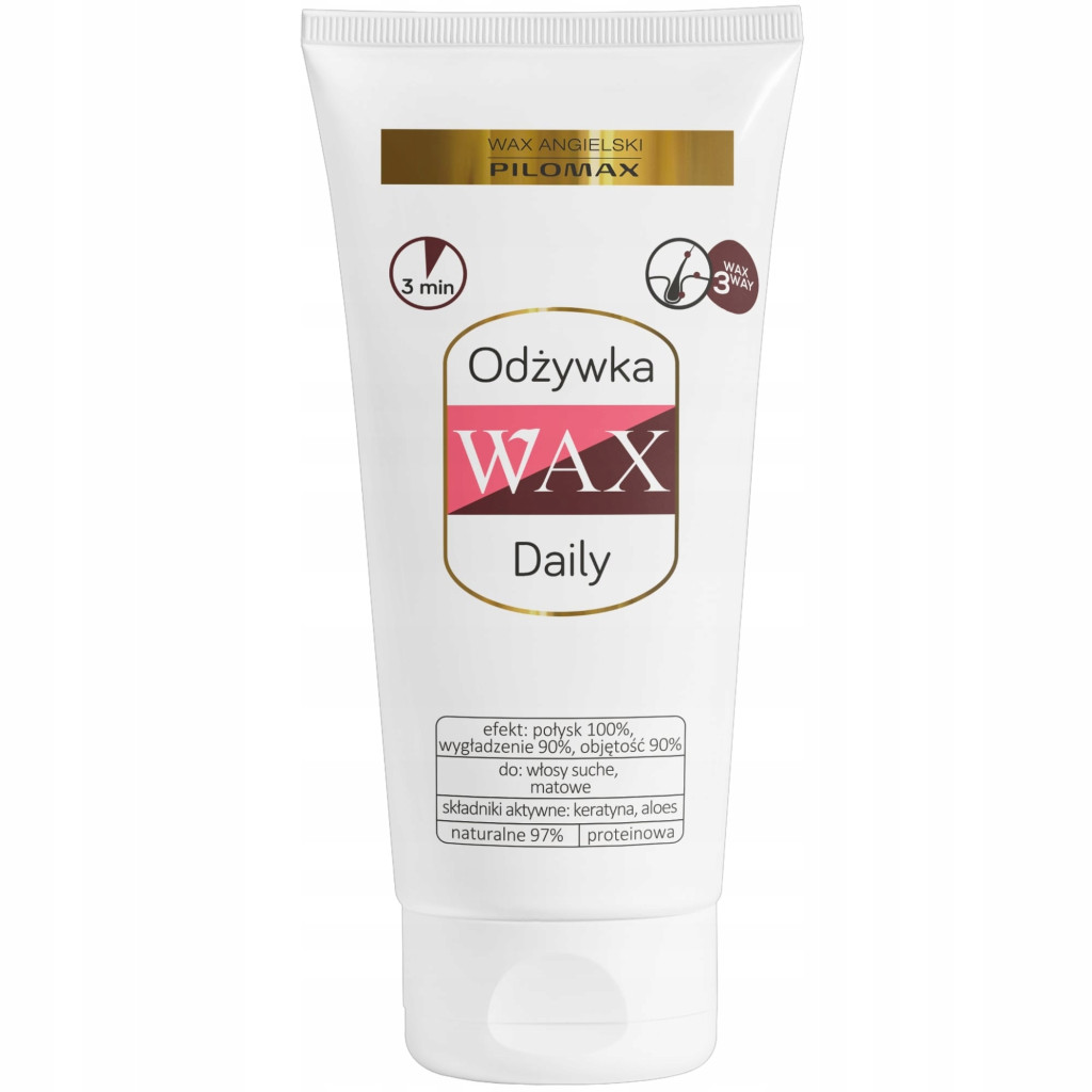 - Odżywkę keratynową Wax Daily nanieś na umyte, wilgotne włosy od nasady aż po końce. By rozprowadzić preparat równomiernie, możesz przeczesać włosy grzebieniem.