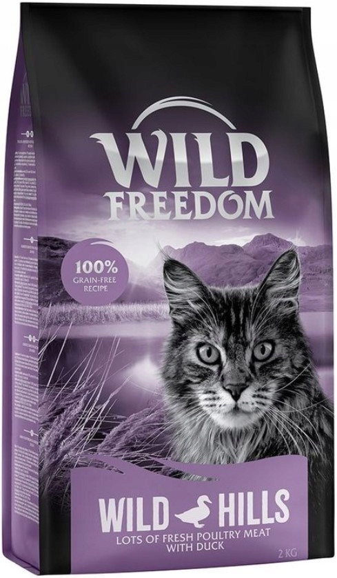Wild Freedom „Wild Hills” to sucha karma podstawowa z delikatnym mięsem kaczki – idealnym składnikiem, który zjedna sobie każdego kociego smkaosza! Całkowity udział mięsa mięśniowego i produktów pochodzenia zwierzęcego wynosi 70%. By zapewnić karmie wysoką akceptację i przyswajalność, w procesie produkcji używamy tylko świeżego mięsa drobiowego. Dzięki temu pokarm dostarczy Twojemu kotu wyłącznie pełnowartościowe białka.