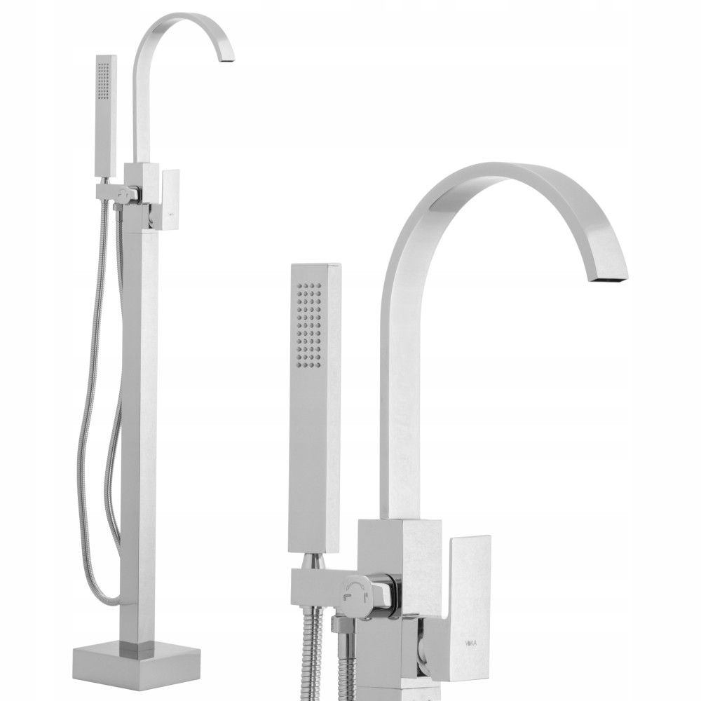 Wysokiej jakości bateria wannowa z kompletem natryskowym w stylu minimalistycznym.
