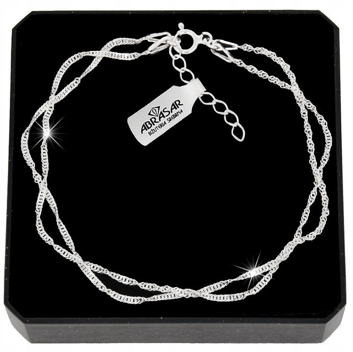 BRANSOLETKA DAMSKA SREBRNA PODWÓJNA SINGAPUR NA RĘKĘ REGULOWANA SREBRO 925
