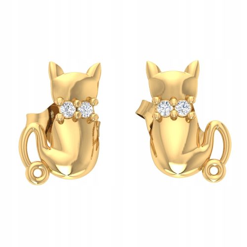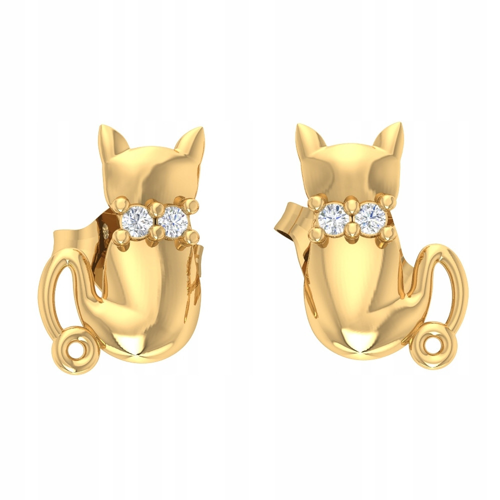 Urocze kolczyki w kształcie kotków. Przpięknie mieniące się w blasku światła dzięki polerowanym powierzchniom. Dodatkowego blasku nadają im białe cyrkonie zakute na szyjce kotka. Kolczyki wykonane są w całości ze złota próby 585 dzięki czemu są bardzo trwałe.