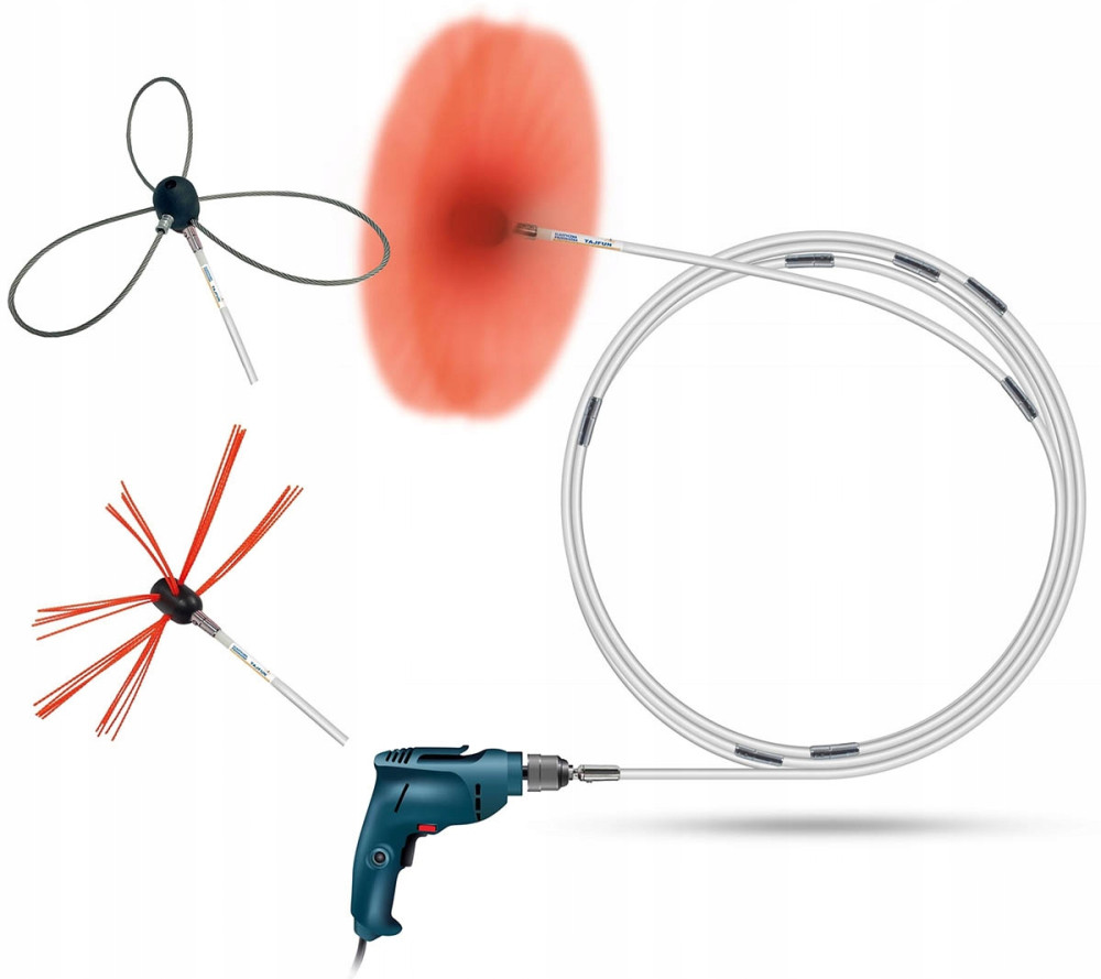 TAJFUN - Zestaw do czyszczenia komina WIERTARKĄ 9m + 2 GŁOWICE