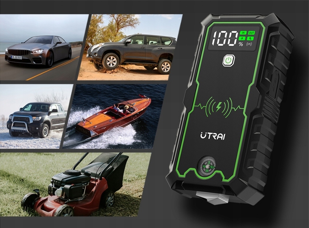 Uruchom nie tylko pojazdy 12 V, takie jak samochody osobowe, SUV-y, pickupy, ciężarówki i motocykle, ale także łodzie, skutery śnieżne, a nawet kosiarki do trawy.
