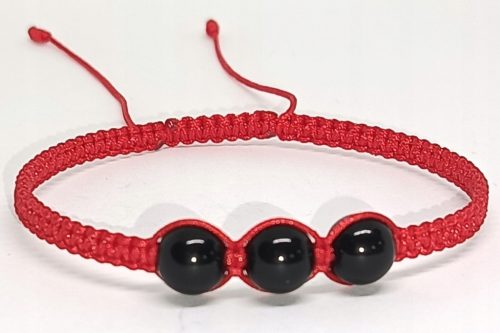 Rozmiar uniwersalny, regulacja przez zaciśnięcie bądź rozsunięcie splotu makramowego (obwód całkowicie zaciśniętej bransoletki to 17cm).