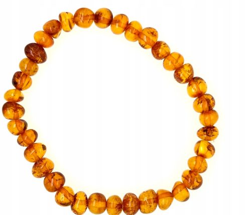 Bransoletka została wykonana z naturalnego bursztynu bałtyckiego o ciepłym odcieniu koniaku.