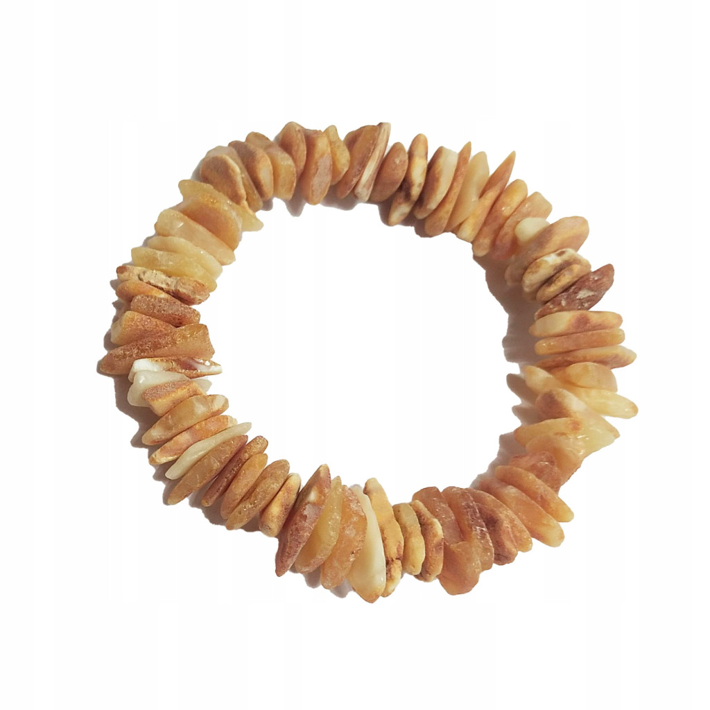 Piękna bransoletka wykonana w całości z naturalnego bursztynu bałtyckiego nieoszlifowanego, surowego. Ręcznie nawlekana na gumce. Pasuje na nadgarstek 17-20 cm.