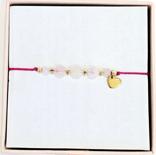 Bransoletka Szczęścia z kamieni naturalnych z serduszkiem na różowym sznurku.