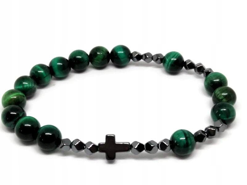 Bransoletka RÓŻANIEC wykonana z kamieni naturalnych TYGRYSIEGO OKA ZIELONEGO i HEMATYTU.