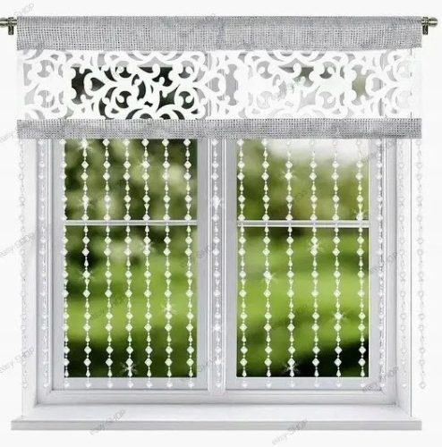 ✅ Nowoczesny panel dekoracyjny uszyty z grubego filcu w kolorze białym przyozdobiony długimi koralikami z możliwością odpięcia do prania.