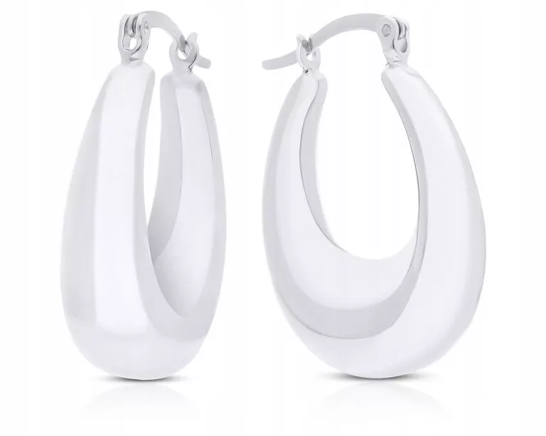 Ženski srebrni viseči uhani, gladki, široki (925).
