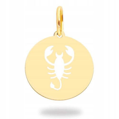 Złota zawieszka ze znakiem zodiaku, wykonana z 14-karatowego złota (próba 0.585), gładka powierzchnia.