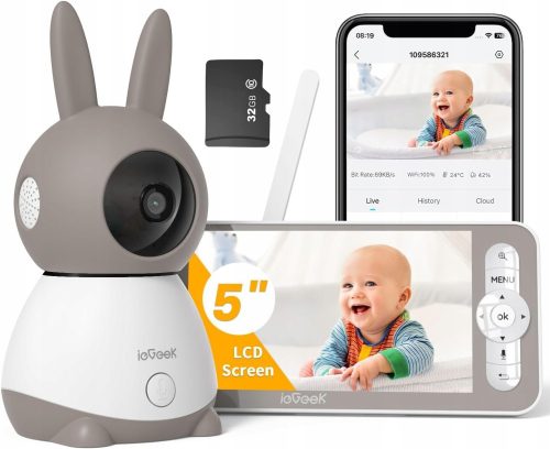 5-calowy ekran LCD 1080P pozwala lepiej widzieć dziecko. Urządzenie obsługuje funkcję PTZ pan/tilt. Może obracać się o 355° w poziomie i 60° w pionie. Możesz ręcznie kontrolować widok elektronicznej niani z kamerą lub włączyć funkcję automatycznego śledzenia, a widok kamery będzie automatycznie podążał za dzieckiem. Wbudowany czujnik temperatury i wilgotności wykrywa temperaturę i wilgotność w pokoju dziecka.