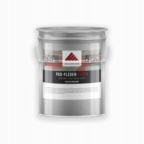 Pad-Flegen-Super to impregnat do kostki brukowej o szczególnie intensywnym działaniu. Silnie łączy się z podłożem, tworząc powierzchnię hydrofobową oraz nadając pożądany efekt mokrej kostki.
