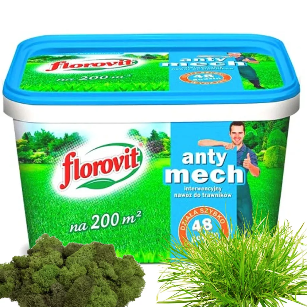 Florovit ANTY MECH nawóz interwencyjny do trawników, jest bardzo skuteczny oraz bardzo wydajny, został przeznaczony do wszystkich rodzajów trawników wieloletnich, na których występuje mech. Nawóz wspiera utrzymanie soczyście zielonej, dobrze wybarwionej, gęstej i zwartej darni trawnika, a jednocześnie skutecznie pozbywa się niechcianego mchu. Działa bardzo szybko, pierwsze efekty już po 48 godzinach od zastosowania.