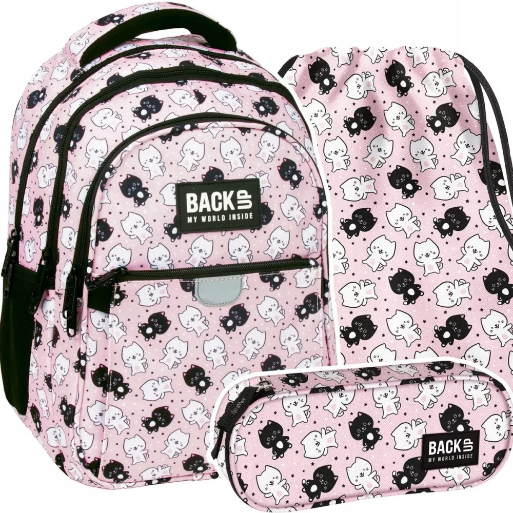 ZESTAW 3 el. Plecak wczesnoszkolny BackUP 24 L koty, KOTKI RÓŻ (PLB6P32SET3CZ)