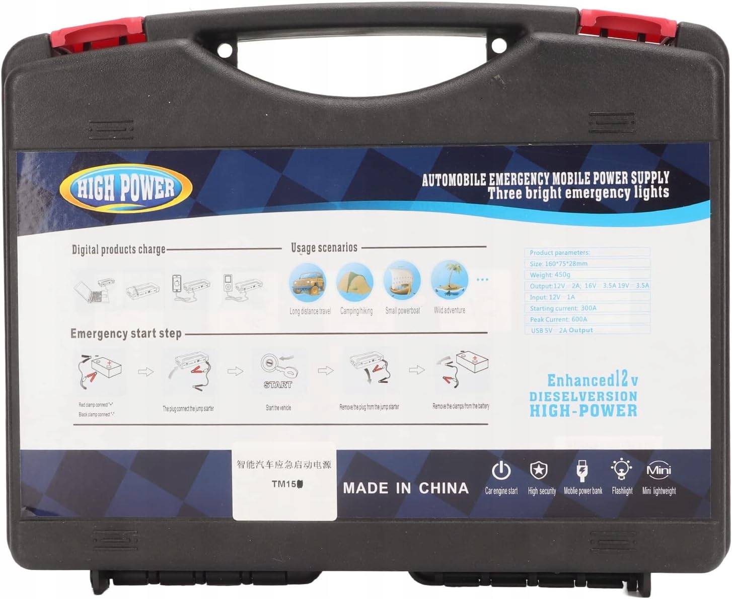 Dzięki prądowi szczytowemu 600 A przenośny rozrusznik samochodowy może uruchomić pojazdy 12 V w ciągu kilku sekund. Ten mocny awaryjny rozrusznik samochodowy umożliwia uruchomienie samochodów, ciężarówek, motocykli i SUV-ów w ekstremalnych temperaturach (-40°C - 60°C). .