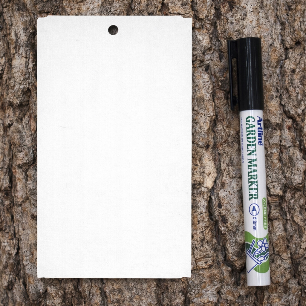 MARKER +Białe zawieszki o wymiarze 163,5x100m do roślin wykonane z trwałego tworzywa HDPE z certyfikatem dopuszczenia do kontaktu z żywnością. To profesjonalne etykiety ogrodnicze przeznaczone do trwałego znakowania roślin w szkółkach, centrach ogrodniczych, gospodarstwach ogrodniczych oraz w uprawach owoców i warzyw.